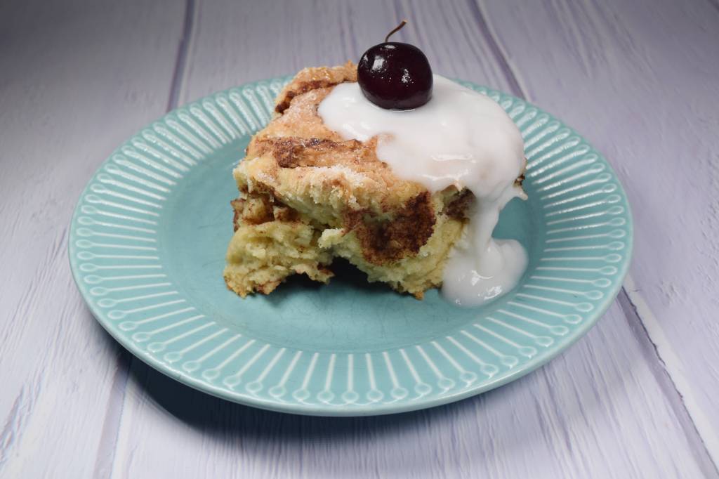 - Once the dough is ready, flatten it to a square shape. Spread the cinnamon filling on it.